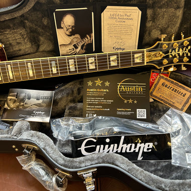 Epiphone Ltd Ed Les Paul Custom 100th Anniversary Electric Guitar - Inc Anniversary Hard Case - pickgaurd hand signed by Les Paul